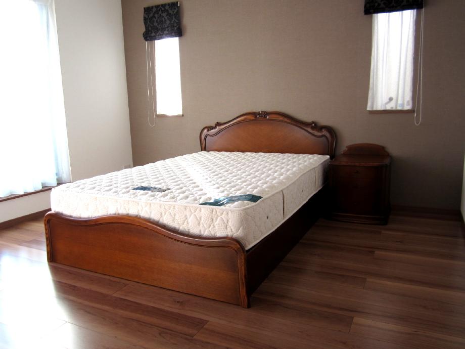 アールヌーボーを基調にした ダブルベッドです。今回は、お客様の愛用のマットがあるのでフレームのみの納品です。ヘッドボード、フットボード共に優雅な曲線のラインと綺麗な楢の柾目が印象的でした。