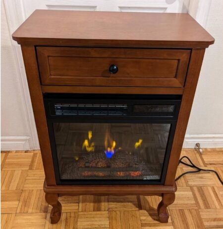 電気式暖炉は、一般的な薪の暖炉やガス式の暖炉と違って複雑な設置工事などが無く、家庭式のコンセントに繋ぐだけで使用できるという便利さです。暖炉があると、温かみや高級感が増し、お部屋のインテリアが非常に円熟になります。電気式暖炉は通常の暖炉と違い通気孔を開けるなどの工事は一切必要ありません。 炎は本物のようにゆらぎ、効果的に見せることで、ロマンチックな炎を演出します。暖炉床には精巧に作られた薪が配置されています。!!
