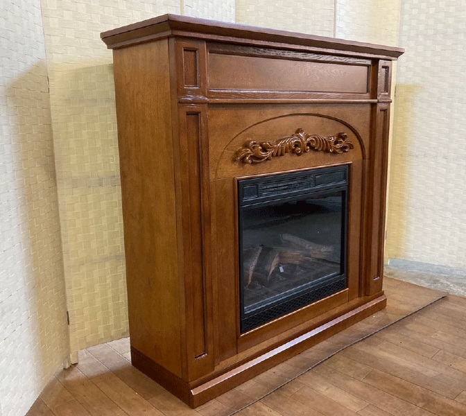 電気式暖炉は、一般的な薪の暖炉やガス式の暖炉と違って複雑な設置工事などが無く、家庭式のコンセントに繋ぐだけで使用できるという便利さです。暖炉があると、温かみや高級感が増し、お部屋のインテリアが非常に円熟になります。電気式暖炉は通常の暖炉と違い通気孔を開けるなどの工事は一切必要ありません。 炎は本物のようにゆらぎ、効果的に見せることで、ロマンチックな炎を演出します。暖炉床には精巧に作られた薪が配置されています。!!